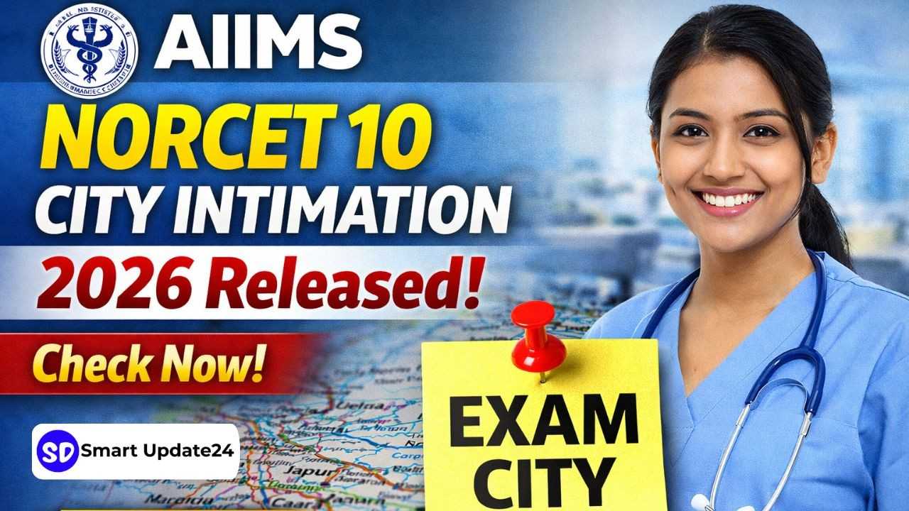 AIIMS NORCET 10 City Intimation 2026 Released: The All India Institute of Medical Sciences (AIIMS), New Delhi, has released the AIIMS NORCET 10 City Intimation Slip 2026 for candidates appearing in the Nursing Officer Recruitment Common Eligibility Test (NORCET-10).