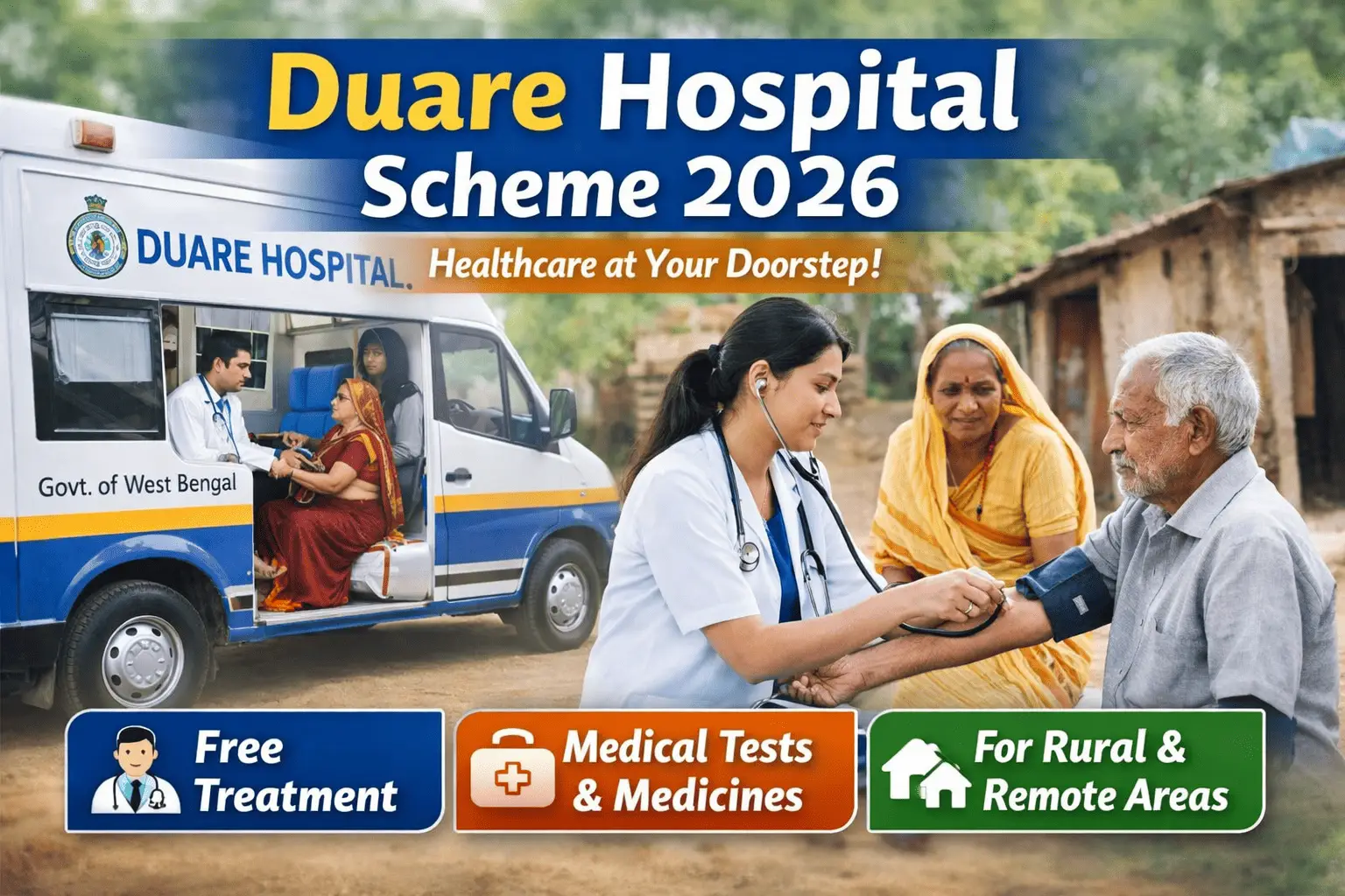 Duare Hospital Government Scheme 2026: The Government of West Bengal has launched Duare Hospital as a transformative public healthcare initiative. The goal is simple and powerful: take quality medical services directly to people’s doorsteps, especially in rural, remote, tribal, and underserved areas where access to hospitals is limited.