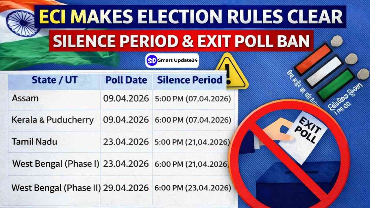 ECI Silence Period Rules 2026: The Election Commission of India (ECI) has released a crucial press note outlining strict regulations on election-related content during the upcoming 2026 Assembly elections and bye-elections. The directive focuses on enforcing the “silence period” and banning exit polls to ensure free and fair elections.
