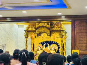 Inside, you’ll find beautifully decorated deities of Radha and Krishna, surrounded by intricate carvings and vibrant colors. The setting is traditional, but the experience feels timeless.