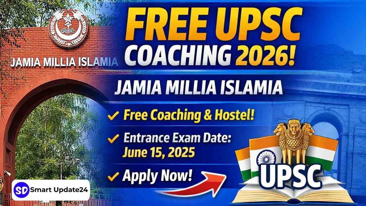 Jamia Millia Islamia Free UPSC Coaching 2026: In a major opportunity for civil services aspirants, Jamia Millia Islamia has invited applications for its Free UPSC Civil Services Coaching Programme 2026. The coaching is offered through its Residential Coaching Academy (RCA) and includes free classes, mentorship, and hostel facilities for selected candidates.