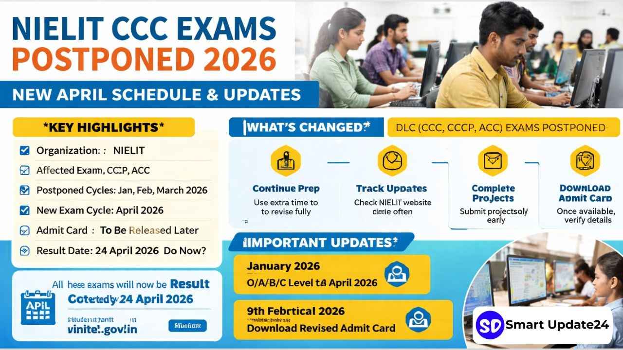 NIELIT CCC Exams Postponed 2026: The National Institute of Electronics & Information Technology has officially announced major updates regarding multiple exam cycles in 2026. Candidates preparing for CCC and other DLC courses should take note of postponed exams, revised schedules, admit card instructions, and upcoming results.