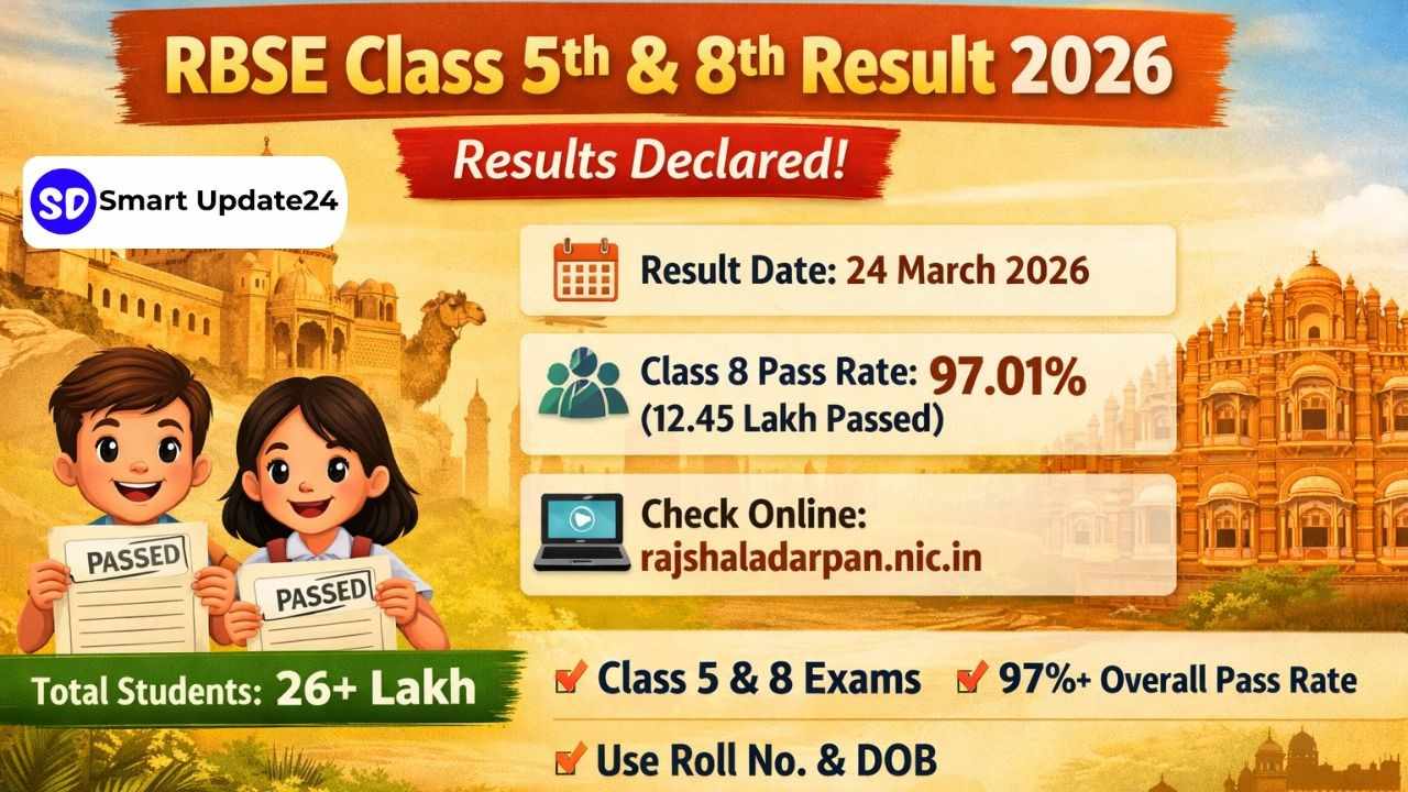 RBSE Class 5th & 8th Result 2026 Declared: The Rajasthan Board of Secondary Education (RBSE) has officially declared the Class 5 and Class 8 Result 2026 on 24 March 2026. Students who appeared for the exams can now check their results online through the official portals.